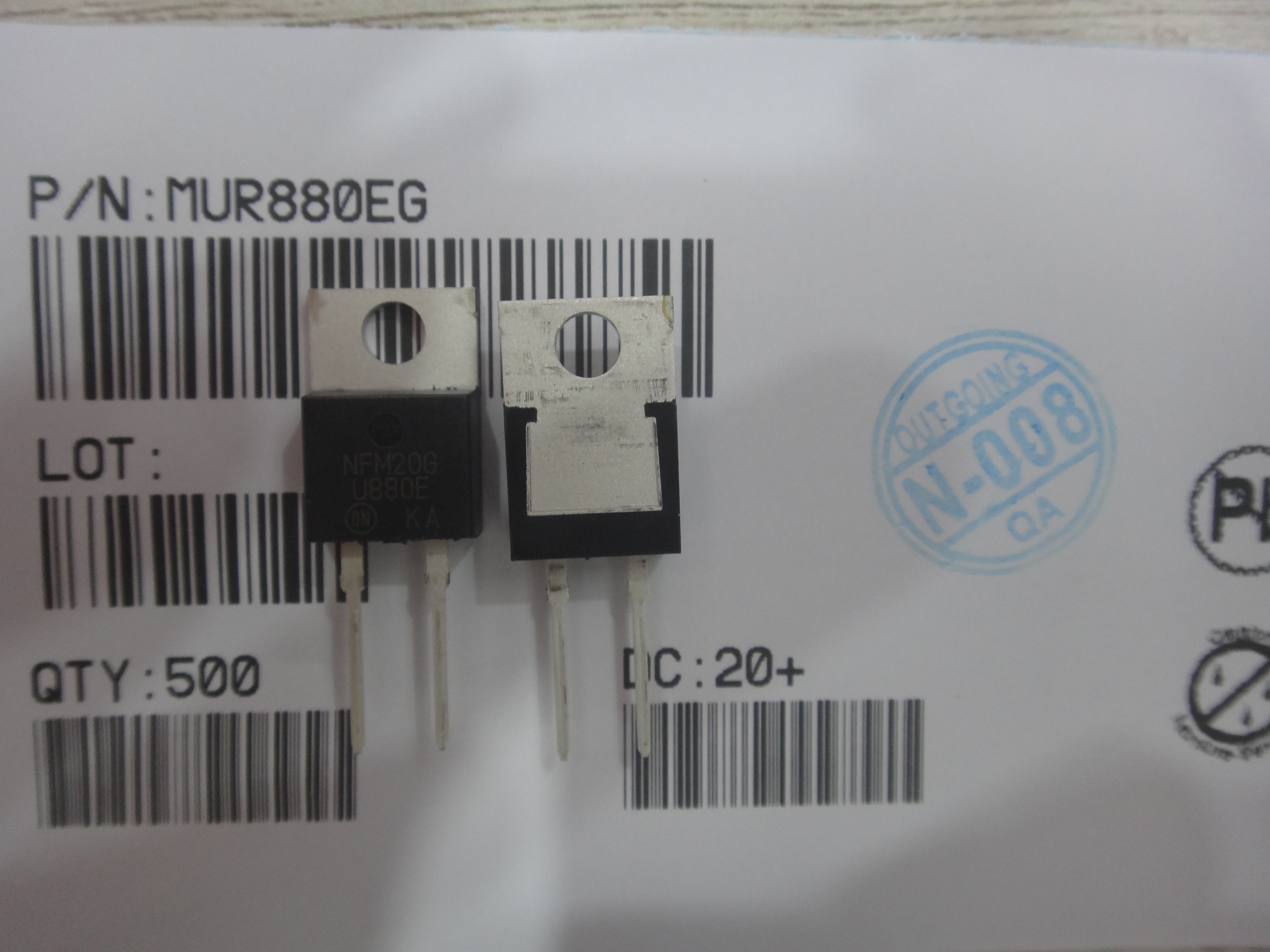 Stocks:Model: MUR880EG Manufacturer: ONSEMI Stocks:500 Describe: This is an 8A, 800V ultra-fast recovery rectifier diode, with a TO-220 package. It features an extremely short reverse recovery time (typical value 35ns) and low forward voltag